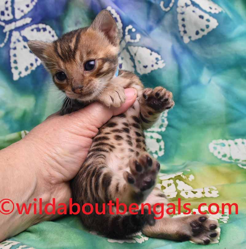 He has a very nice head shape, small ears, and facial features for that wild bengal look. He is a super sweet marshmallow too! Lakota and Merlin are super sweet affectionate bengals and their kittens will be also! When he is grown, this bold bengal boy will be a wonderful companion to a lucky family!